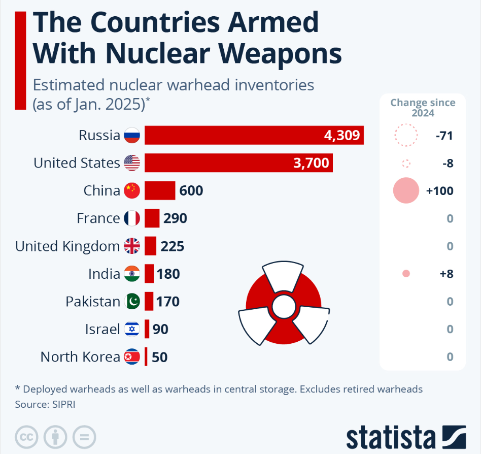 A közelmúltban Donald Trump az amerikai nukleáris fegyverkezés újbóli felpörgetését azzal indokolta, hogy ha nem lépnének, akkor Kína öt éven belül utolérné az Egyesült Államokat a nukleáris képességekben. Ez elemzők szerint nem reális: az USA-nak jelenleg 3700 robbanófejes nukleáris készlete van, míg Kínának csak 600 - a kínai lemaradás azonban valóban csökkenhet.