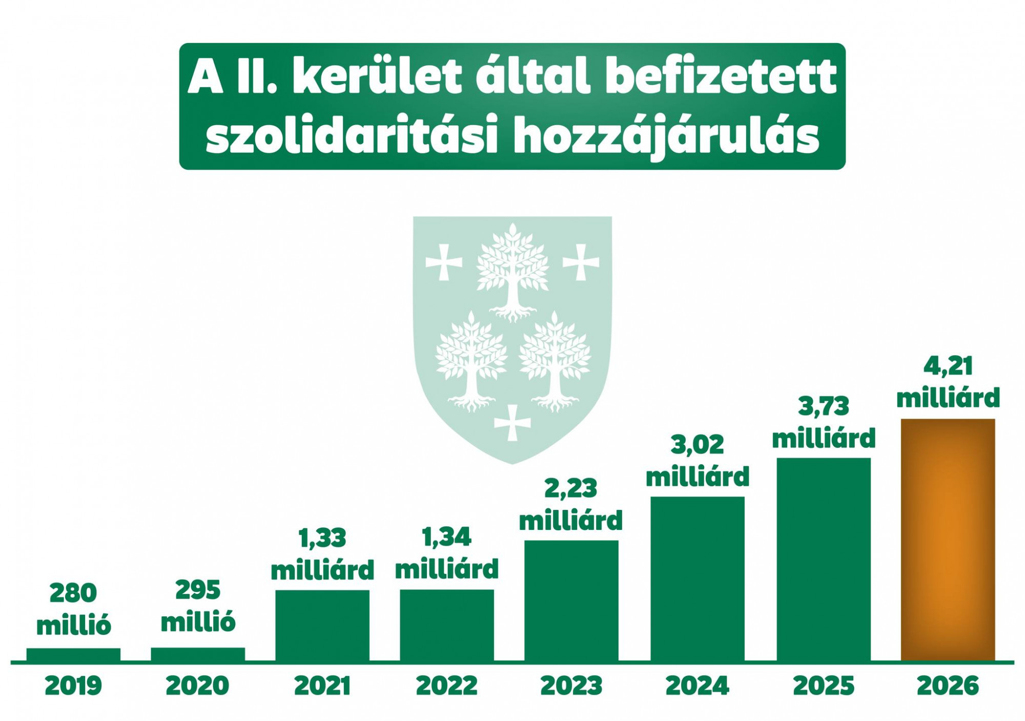 A polgármester által mellékelt grafikon szerint a hozzájárulás mértéke 2019-ben 280 millió forint volt, idén, 2015-ben már 3,73 milliárd, jövőre pedig az össze eléri a 4,21 milliiárd forintot.