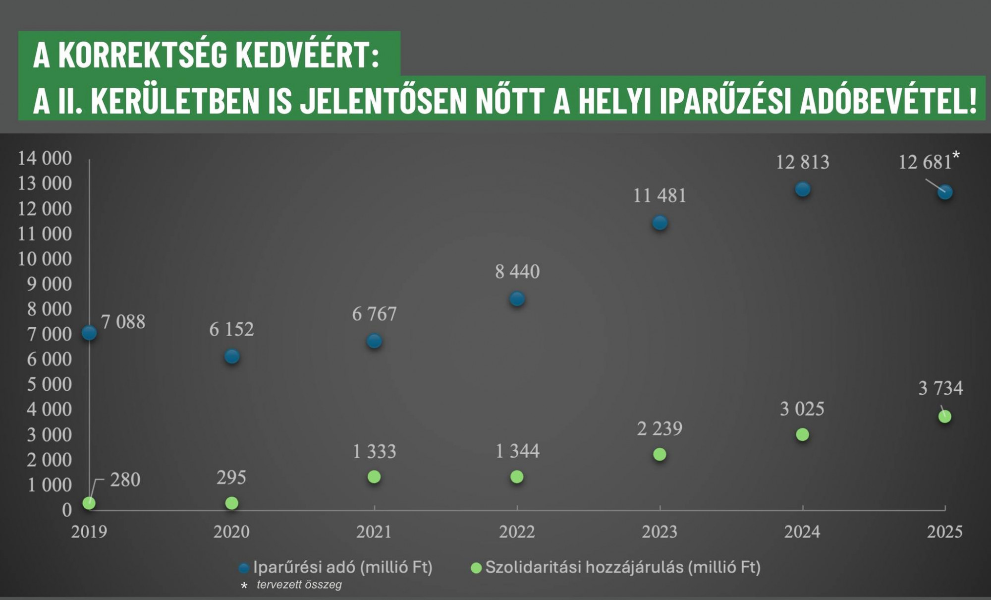 „a II. kerület helyi iparűzési adóbevétele 2019 óta 7 milliárd forintról 2025-re 12,5 milliárd forint felé emelkedett.”