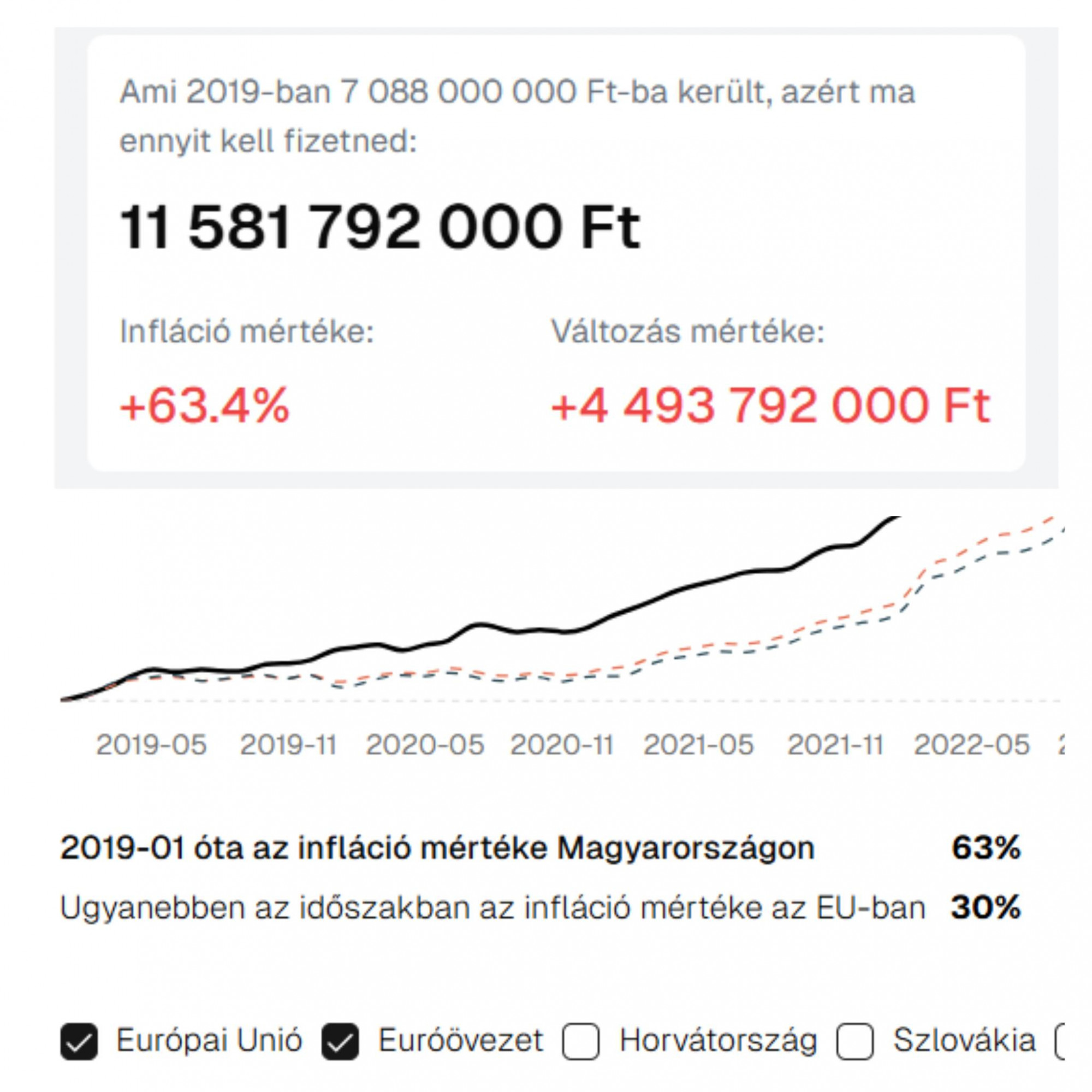 Ehhez egy olyan ábrát mellékelt, ami szerint a 2019-es, 7 milliárd 88 millió forintos adóbevétel az inflációval súlyozva ma 11 milliárd 582 millió forintnak felelne meg.