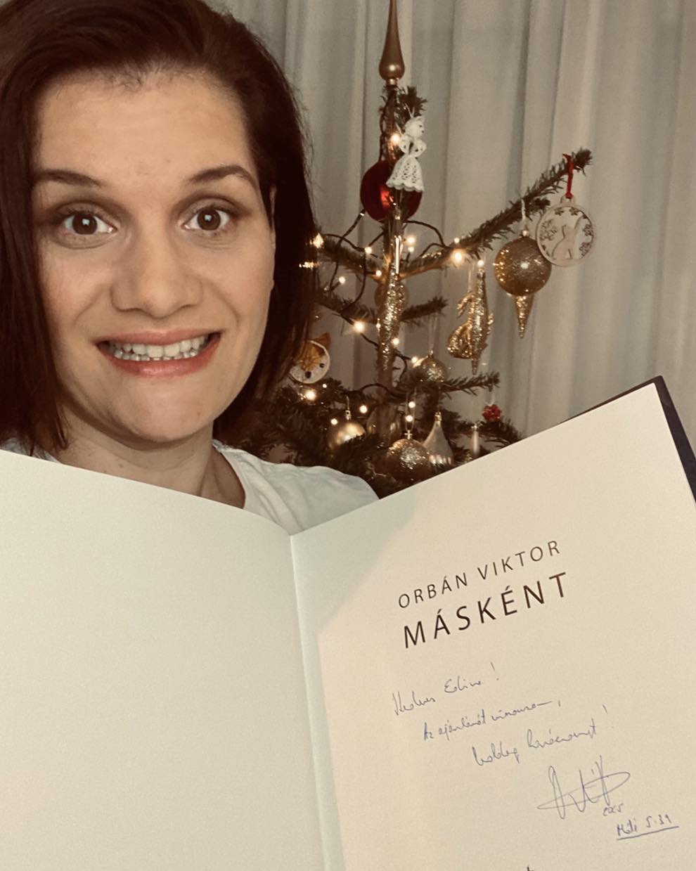 „És tényleg én voltam az a rejtélyes Edina, akinek Facebook-posztban dedikált a nemzetvezető” - fogalmazott bejegyzése elején a stand upos. Az előzmény az volt, hogy a miniszterelnök közösségi médiásai december 21-én kiposztoltak egy fotót arról, hogy Orbán keze Orbán Viktor „Másként” című könyvét dedikálja egy közelebbről meg nem nevezett, Edina nevű nőnek, a következő szöveggel: