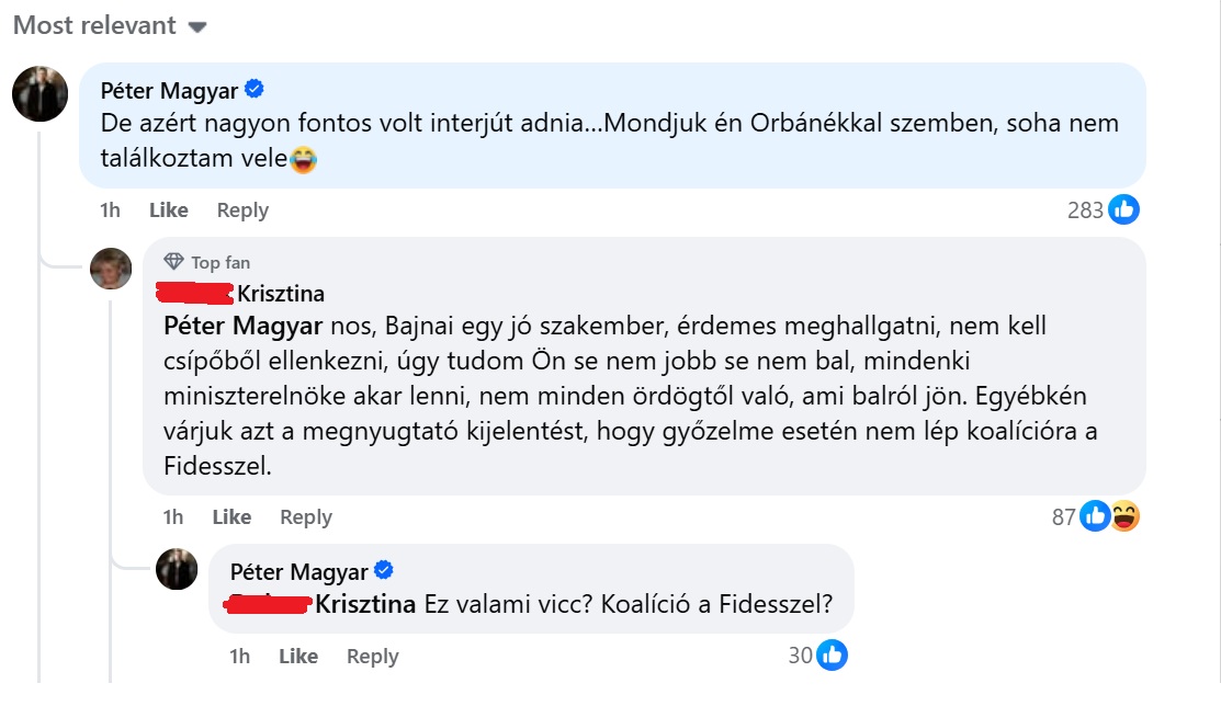 Volt olyan kommentelő, akivel a pártelnök személyesen szállt vitába, mellesleg meglepően sokan kritizálták ezúttal a Tisza elnökét, és írtak pozitívan Bajnairól.