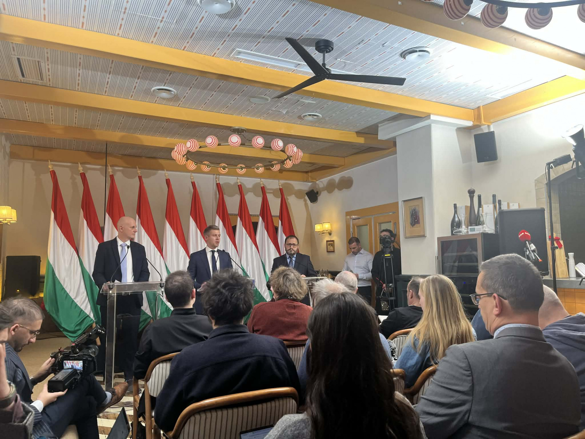 Egészségben és rendszerváltásban gazdag boldog új évet kívánt a nemzetközi sajtótájékoztatója elején Magyar Péter, aki Kármán Andrással, a Tisza költségvetési és adópolitikai szakértőjével, illetve Tanács Zoltánnal, a kormányzati felkészülésért felelős szakemberrel állt ki nem sokkal Orbán Viktor nemzetközi sajtótájékoztatója után.