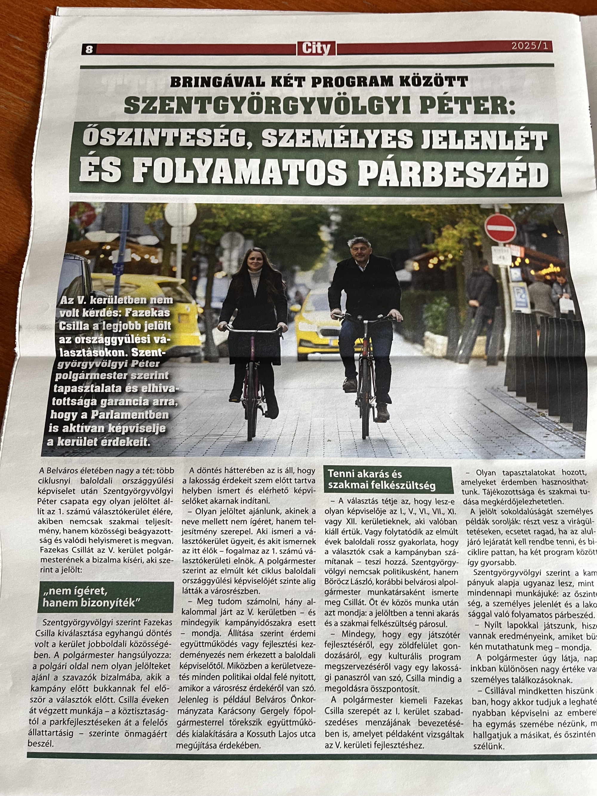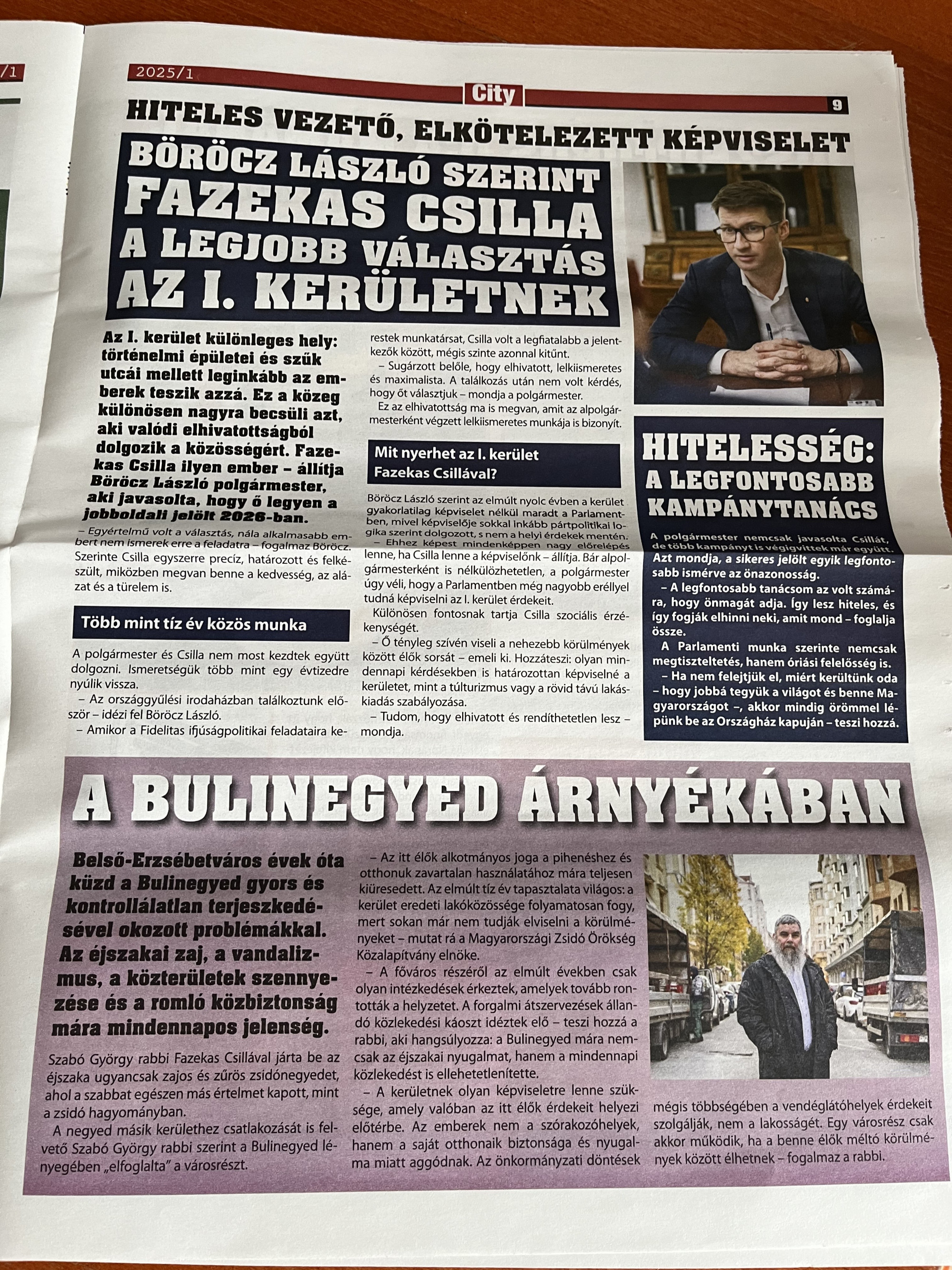 Az Élő Belváros Polgári Egyesület most igencsak képben volt. Az általuk kiadott City magazin jóval megelőzve a budapesti Fidesz - Orbán Viktor részvételével - meghozott keddi döntését a fővárosi jelöltektől, és már a Belváros fideszes jelöltjeként népszerűsítette az I. kerület alpolgármesterét, Fazekas Csillát. Erre Herfort Marietta, a DK jelöljte hívta fel a figyelmet.