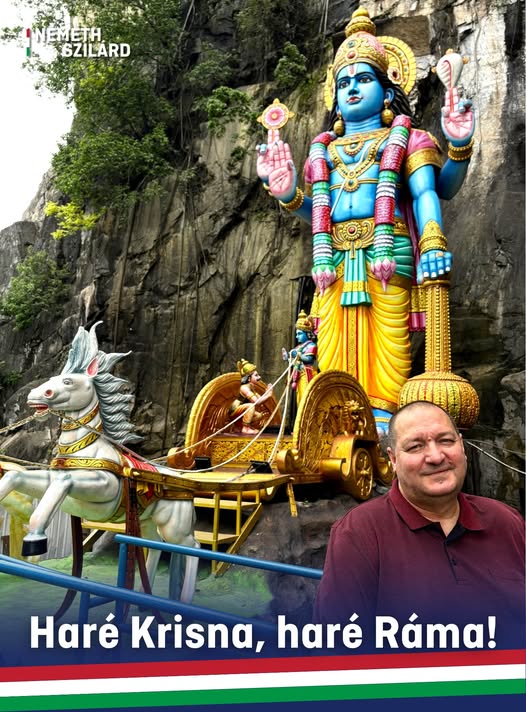 „A hinduk egyik eposzát, a Rámájanát (Ráma utazását) bemutató barlang bejáratánál, a kuala lumpuri Batu-barlangoknál. 🛕”