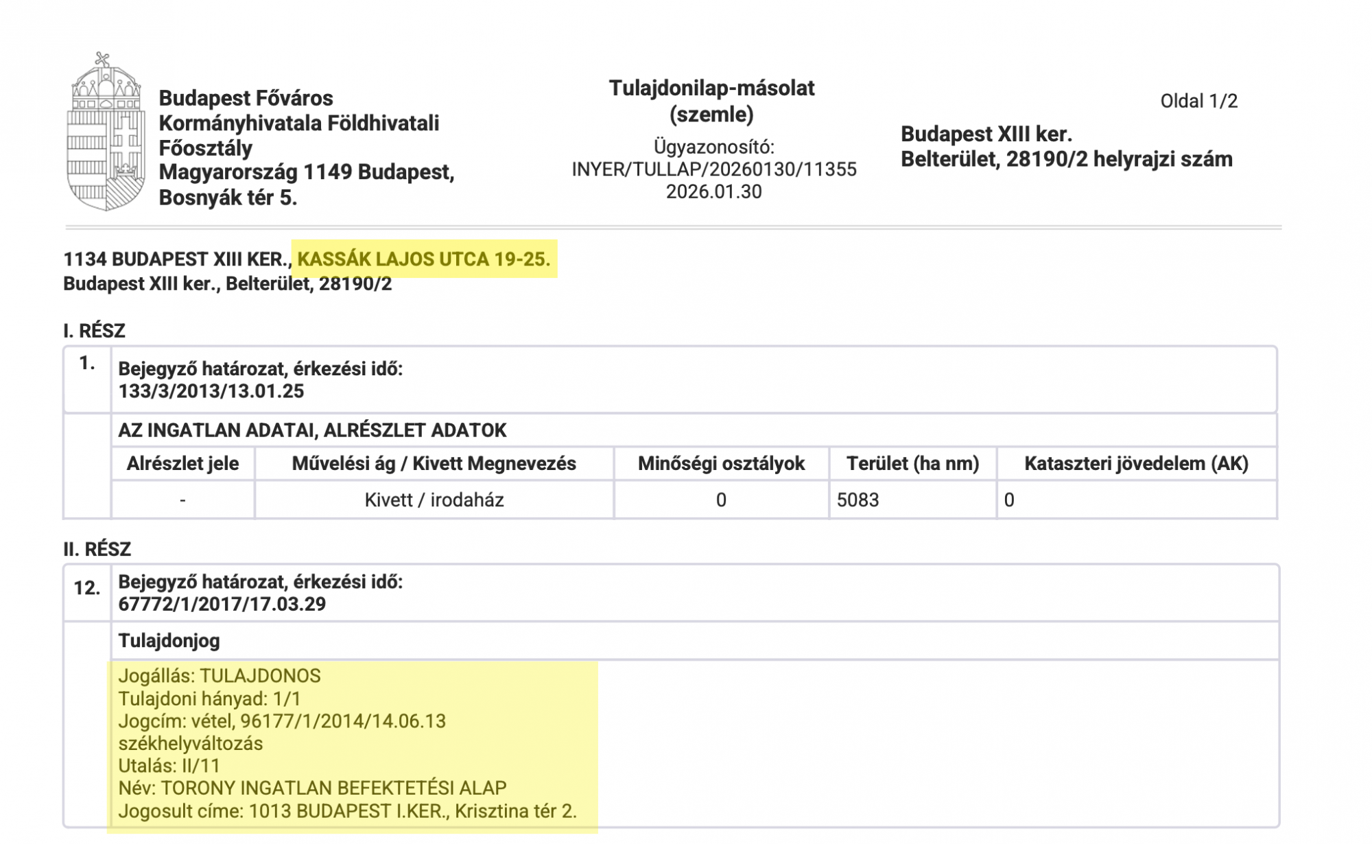 Az irodaház, amiben berendezkedtek, a Torony Ingatlanbefektetési Alap tulajdonában áll, amelyet a miniszterelnök vejéhez, Tiborcz Istvánhoz köthető Gránit Alapkezelő kezel.