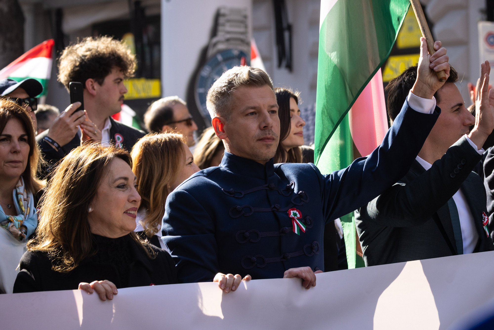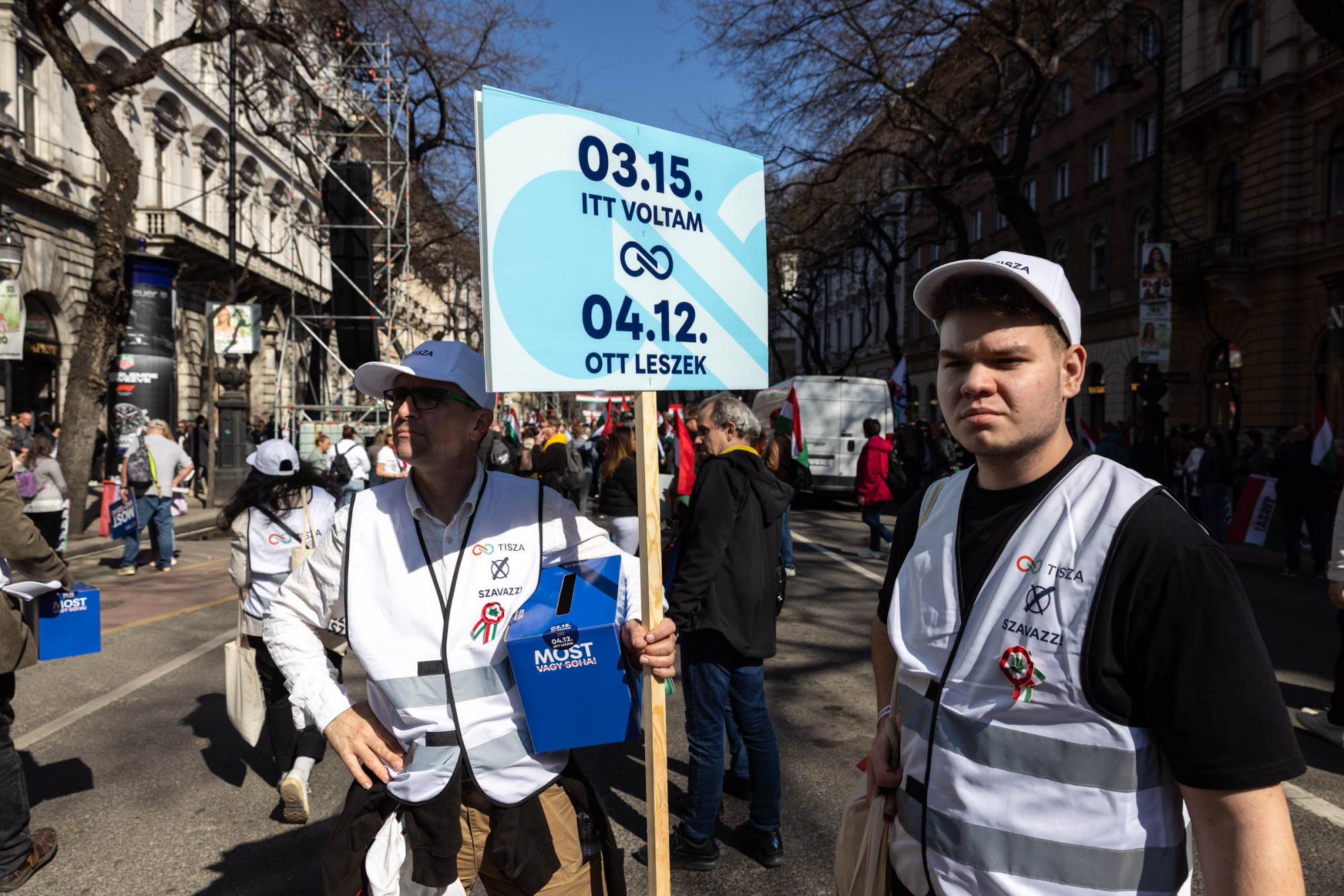 A Most vagy soha feliratú molinót a Tisza ismert arcai vitték, először lehetett az első sorban Kapitány István és Orbán Anita is. Kapitány láthatóan jól érezte magát a szerepben, mosolyogva integetett a tömegnek végig az Andrássyn. Magyar szigorú arccal menetelt, attilában.