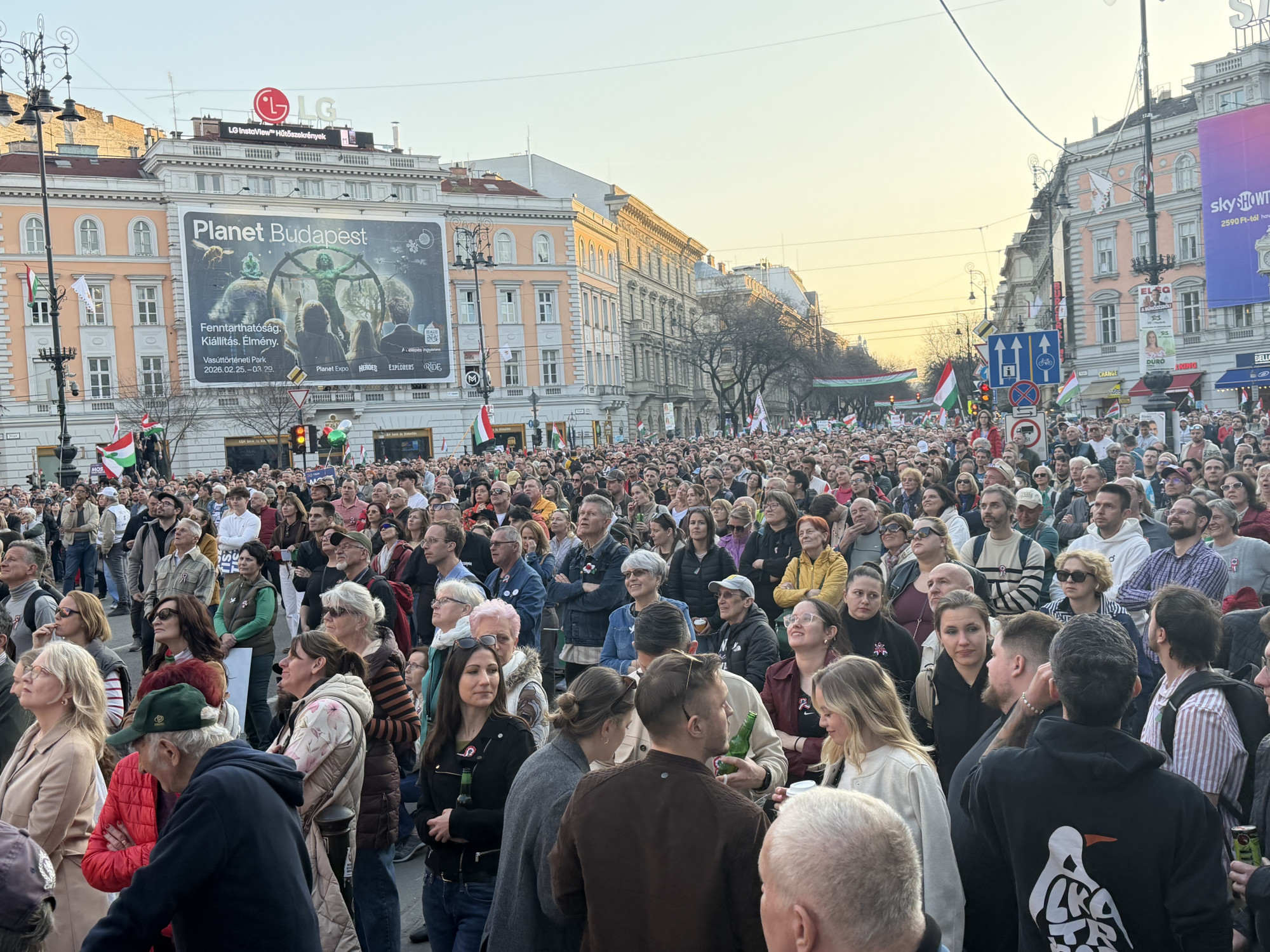 Már elkezdődött a műsor a színpadon, mikor a tömeg vége még mindig vonult az Andrássyn. Az Oktogonnál és a Kodály köröndön is nagyon besűrűsödött a menet, a Magnetbanktól a Hősök teréig pedig egybefüggő embertömeg volt.