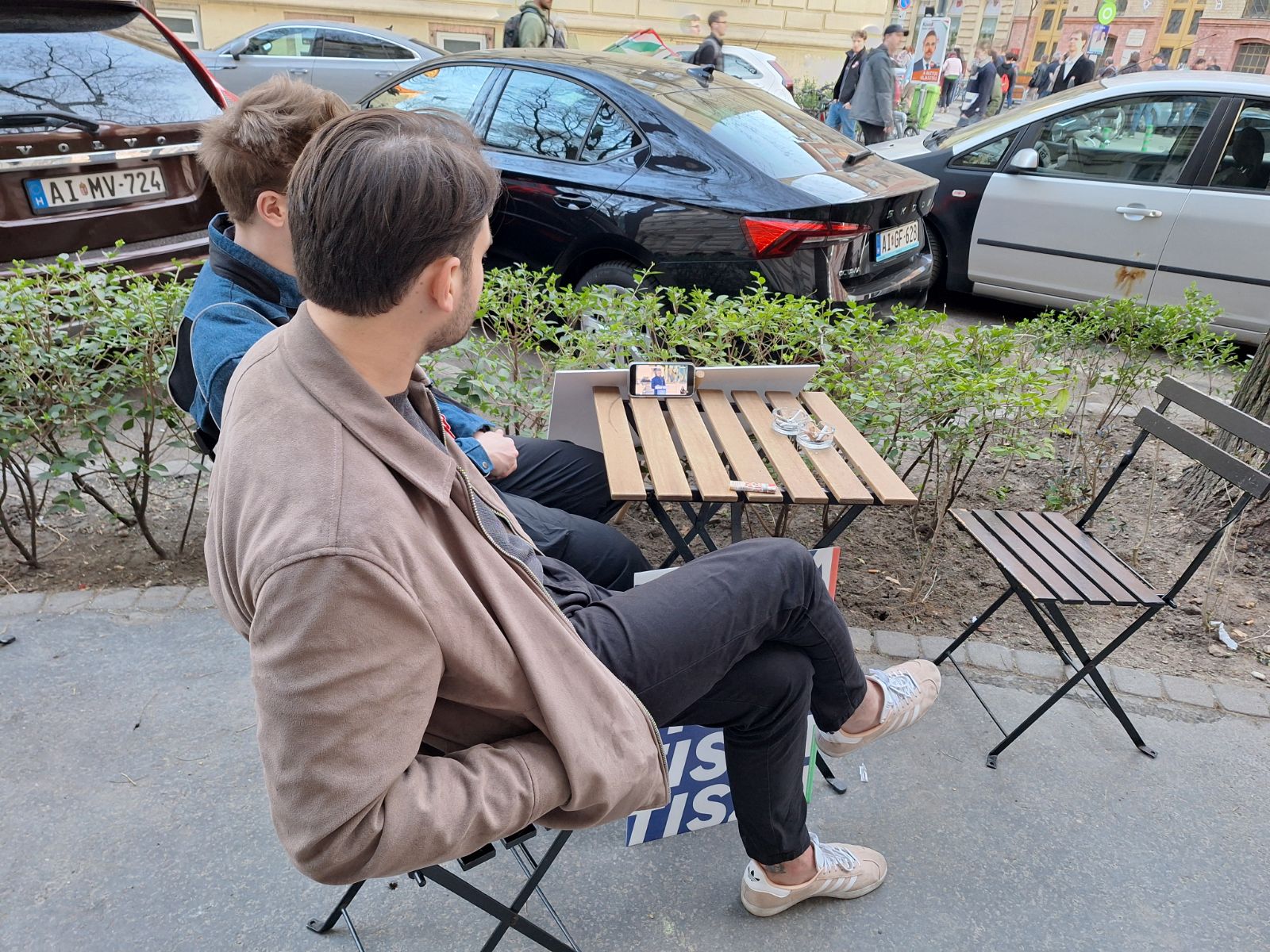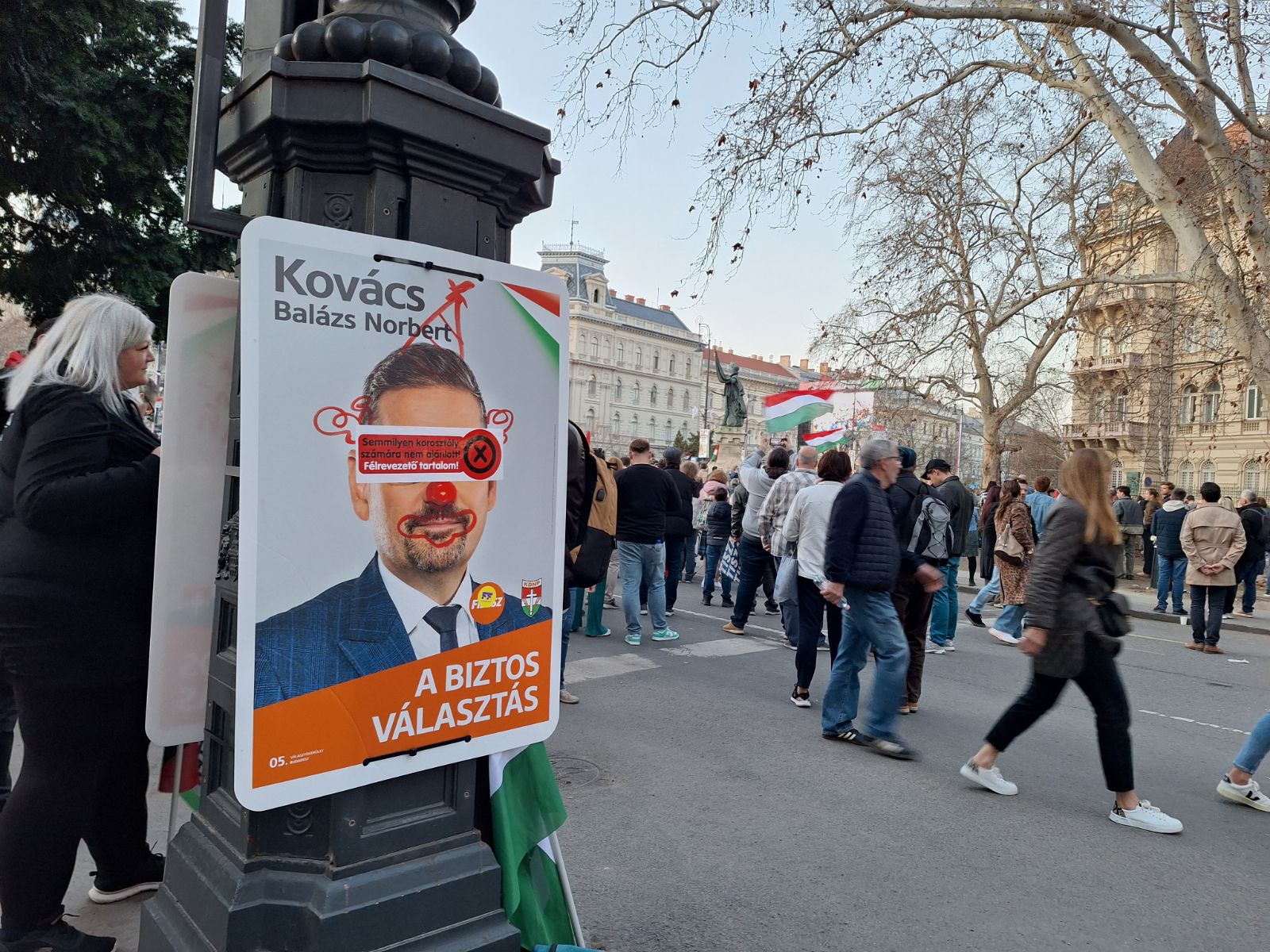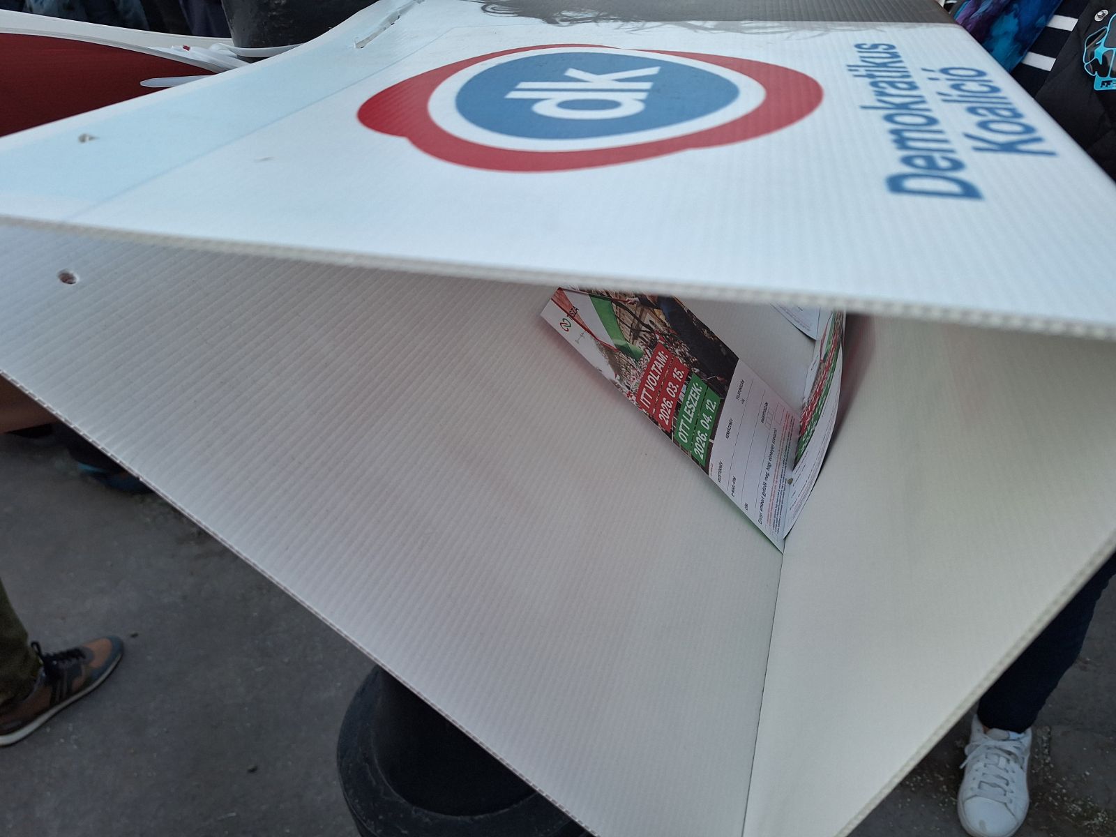 A legvége több mint egy órát egy centit sem mozdult, de a napsütés kisimította az idegeket, mindenki várta a sorát. Az utolsók négy előtt pár perccel kanyarodtak rá az Andrássy útra. Az Oktogonig talán Dobrev Klára plakátjából volt a legtöbb, majd jöttek a fideszes plakátok. Egyik sem maradt érintetlenül.