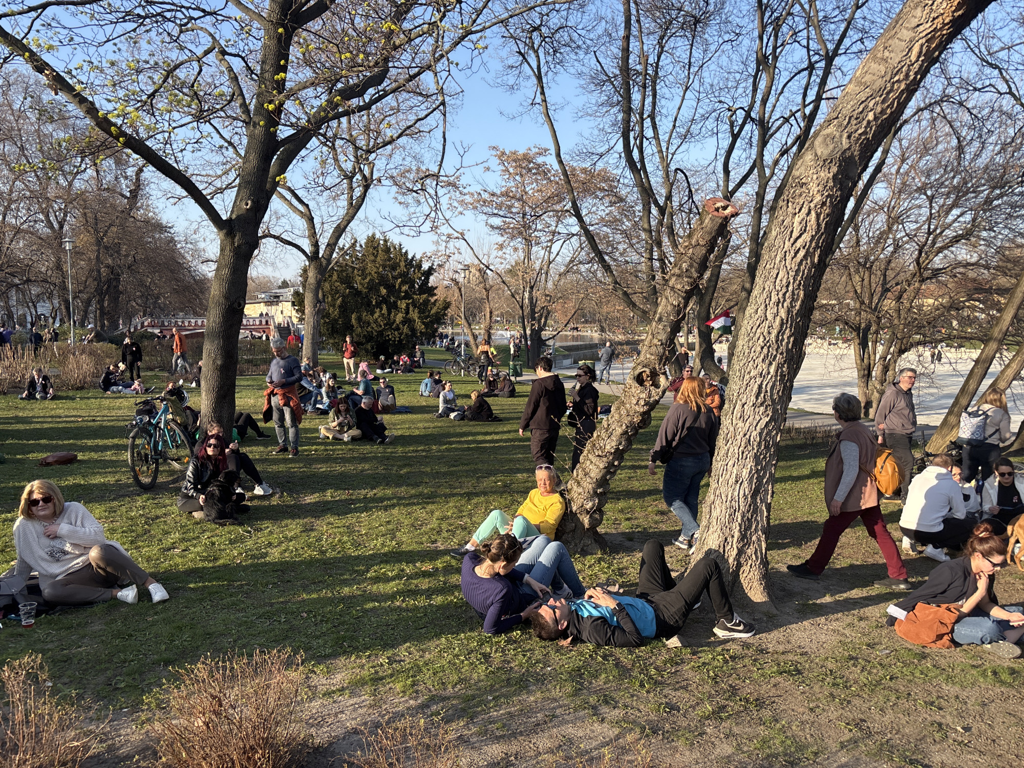 Az Andrássy úton és a Hősök tere környékén nagyon sok volt a fiatal, sokan vitték magukkal a kicsi gyerekeiket is, a Hősök tere mögött klasszik piknikhangulat volt, beszélgetésős, iszogatós, fiatalos.