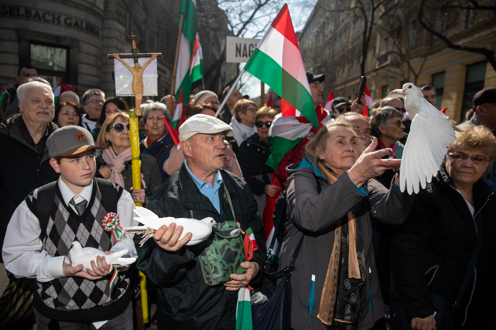 A Békemenet jó nagyra nőtt, azt nem fogjuk tudni biztosra mondani, hogy ez volt-e a valaha volt legnagyobb, mindenesetre a Margit híd és aztán a Kossuth tér is szépen megtelt. Riportunkat a Békemenetről itt találja. A menetben a Szent István körúton békegalambokat is szabadon eresztettek egy feszület mellett.