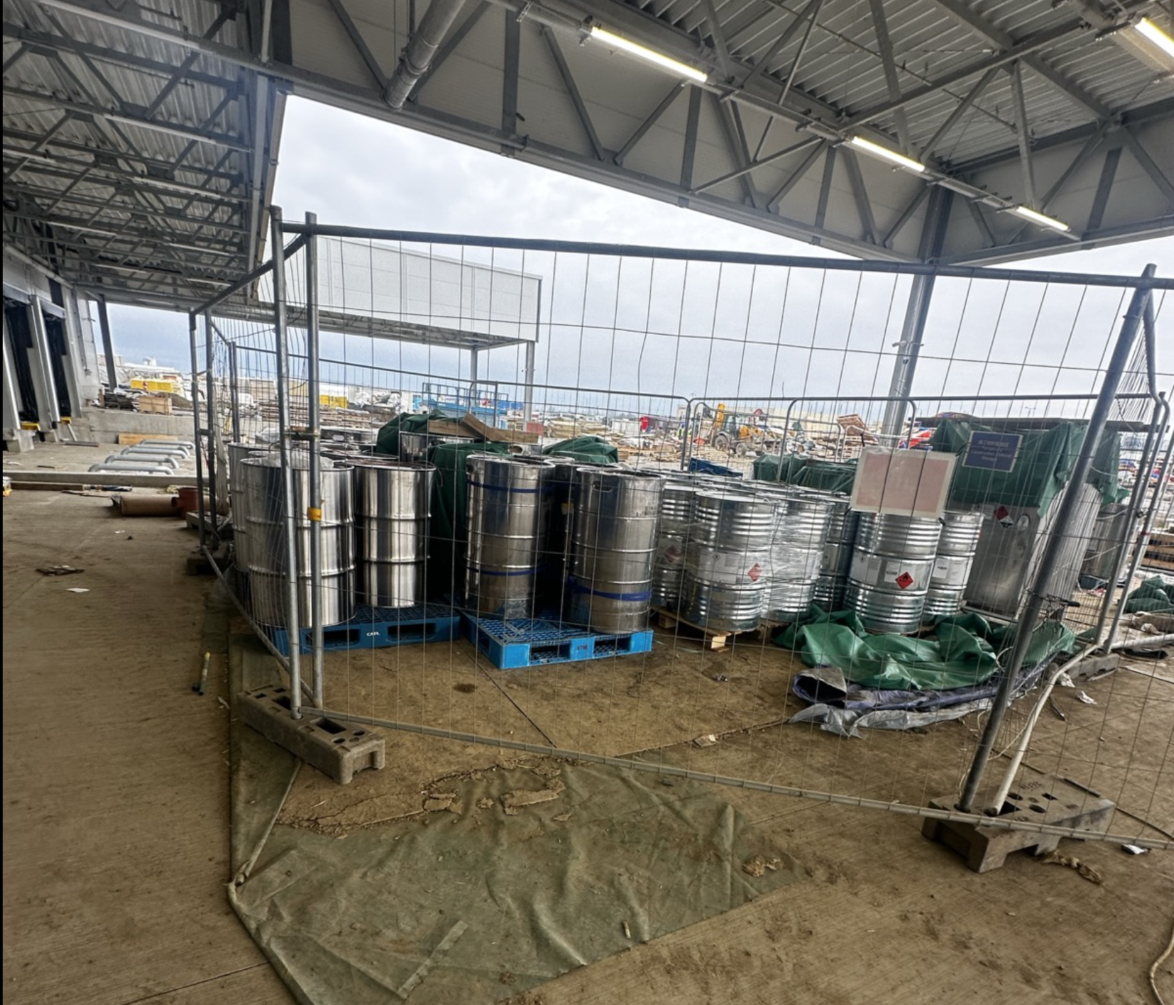 Tárkányi Zsolt, a Tisza helyi képviselője március 11-én osztott meg fotókat a Facebookon, amelyeken veszélyes anyagra figyelmeztető matricákkal ellátott hordók láthatók, amelyeket egy fémkordon vesz körül. A veszélyes anyagokat a csarnokban és a szabad ég alatt is tárolhatták.