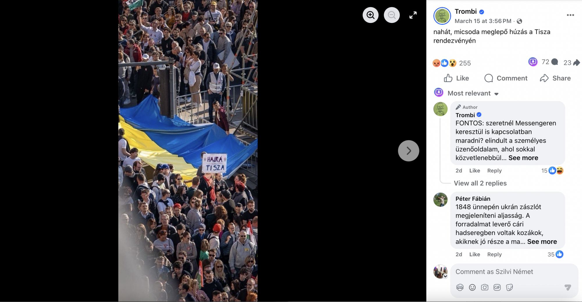 A fotó mégis egy megafonosnál kötött ki a leggyorsabban: elemzésünk szerint Trombitás Kristóf mindenkit megelőzve már 15:56-kor kirakta a képet (egyszerre a Facebookra és az X-re), ezzel a felütéssel: