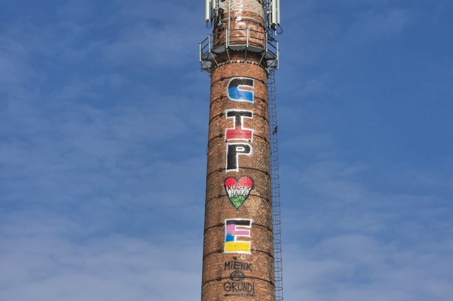 CIPOE-t kormánypártisággal eddig sem volt miért vádolni, most viszont minden eddiginél egyértelműbb, hogy a graffitis nem éppen kormánypárti: az egykori óbudai harisnyagyár kéményére ugyanis kikerült egy gigantikus CIPOE-graffiti, rajta többek között ruszkizással és „MIÉNK A GRUND!” felirattal.