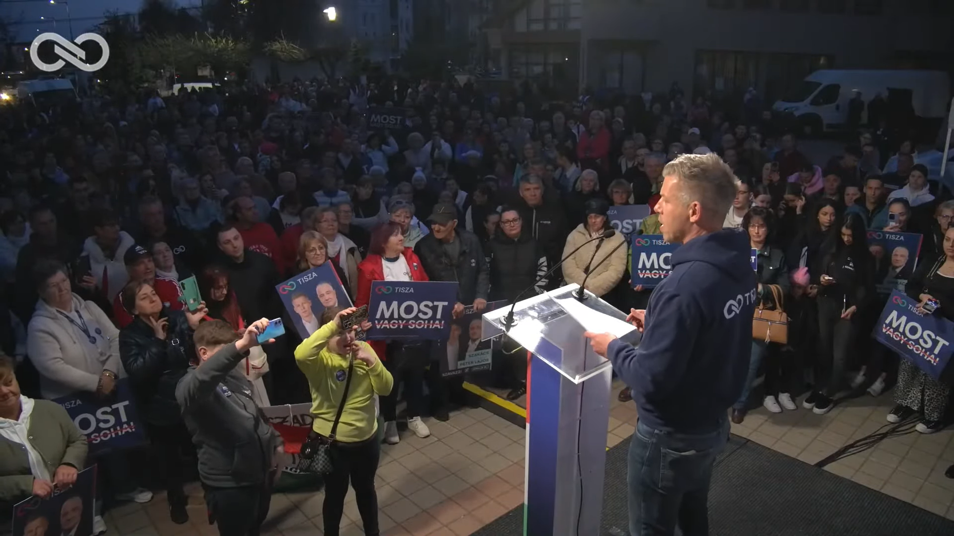 Utánuk még újra beszélt, és elmondta, hogy Orbán Viktor állandóan világpolitikai ügyekről beszél, de a magyarok nem Zelenszkijről, Putyinról vagy Trumpról fognak szavazni, hanem a saját hazájukról és a korrupt Orbán-rendszer elmúlt 16 évéről. Megint arra kért mindenkit, hogy minél több emberrel beszéljenek, és elismételte, hogy történelmet fognak írni. „Ma már több mint 3 millió Ludas Matyi van” – mondta.
