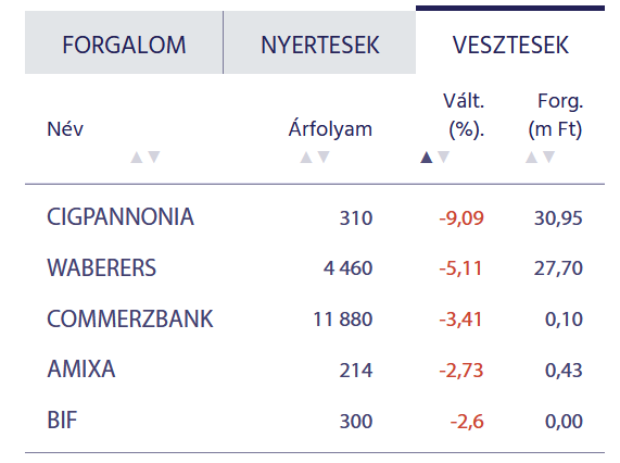 A BÉT kedd délelőtti toplistái szerint
