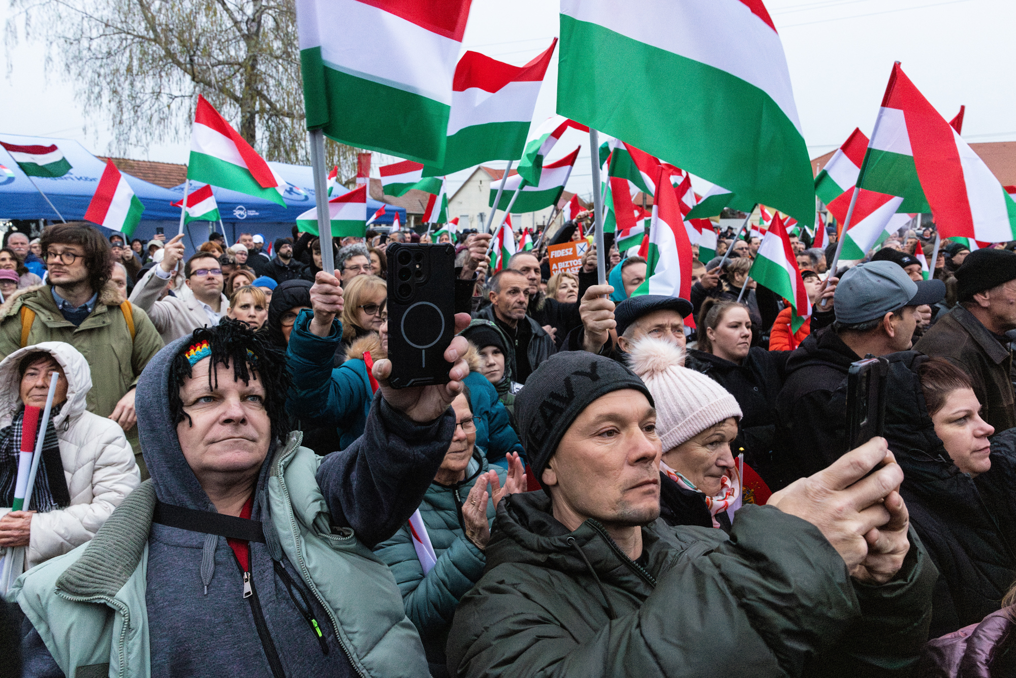 Az esemény kezdete előtt egy órával már gyülekeztek az emberek a lezárt Templom tér környékén. A színpad előtti rész külön le volt kerítve, ide csak azok mehettek be, akik – miután ellenőrizték nevük rajta van-e egy listán – karszalagot kaptak. Ők láthatóan szervezetten érkeztek, kisebb csoportokban, meg is töltötték a számukra kijelölt területet. Ezúttal fáklyákat nem, csak zászlókat osztogattak. A teret csak kétharmadig megtöltő tömegben felbukkant Menczer Tamás a Fidesz kommunikációs igazgatója, és Németh Balázs jelölt is, a kormánymédia és a Megafon apraja-nagyja, valamint magyar és külföldi újságírók is.