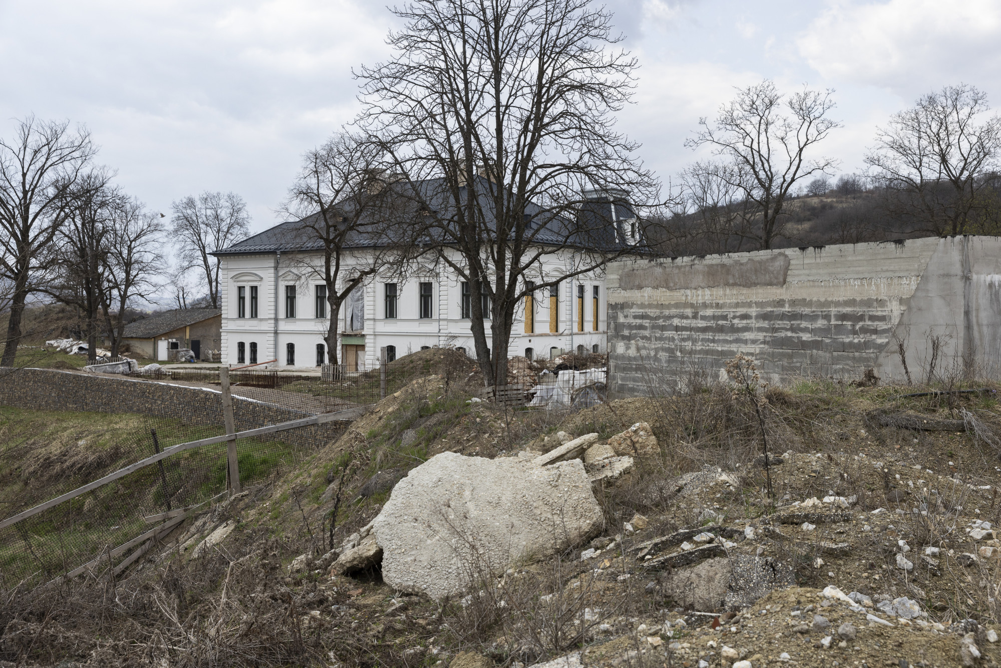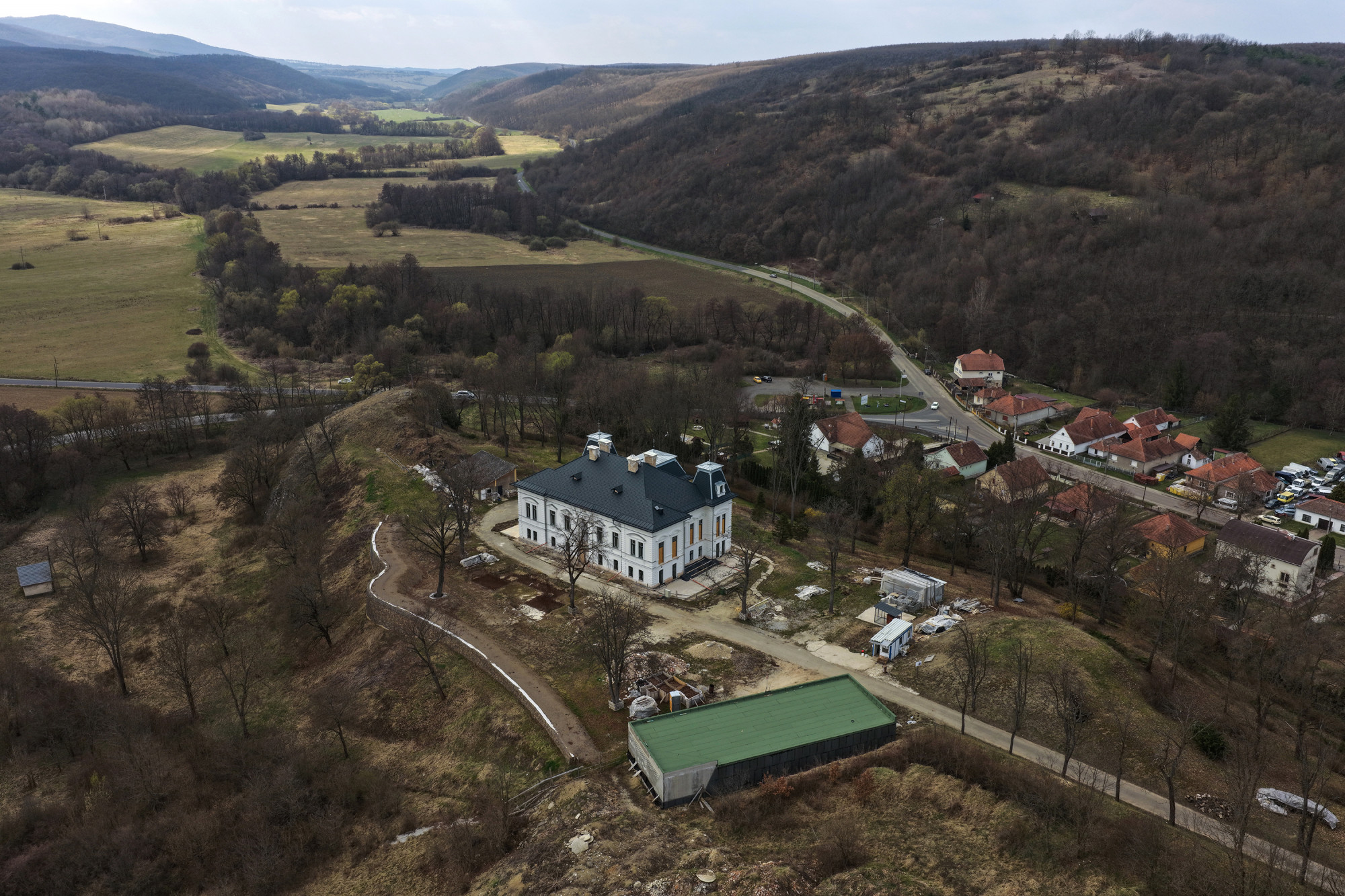 A településből szó szerint és átvitt értelemben is kiemelkedik egy vakító fehérre festett, ötezer négyzetméteres, kétszintes kastély a déli faluvégen, a domboldalban, remek panorámával. Új a tető is, a most divatos fekete színben, újak a kémények, a birtok sarkában pedig valami nagy, szögletes betonhasáb épül, talán sokállásos autóbeálló vagy istálló lesz majd belőle. A felújítás még nincs kész, a kert egy részében beépített betonvasak meredeznek, oda is jön majd valami kiszolgáló épület, nyilván lesz még parkosítás is, és reméljük, hogy az öthektáros telek sarkába kitúrt, dombméretű sitthalmokat is elviszik majd, nem az lesz a sorsuk, hogy hordanak rájuk tíz centi földet, aztán hadd vegye birtokba a természet.