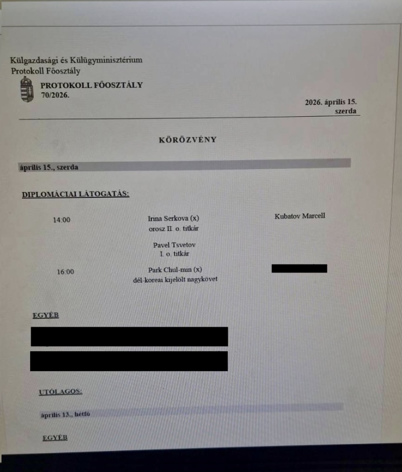 Bár Sulyok Tamás jelezte, hogy Magyar Pétert fogja felkérni kormányalakításra, a Külügyminisztériumban az átmeneti időszakban sem áll meg a munka. Szerdán például az orosz nagykövetség diplomatáit fogadta Kubatov Marcell főosztályvezető, Kubatov Gábor Fidesz-pártigazgató fia.