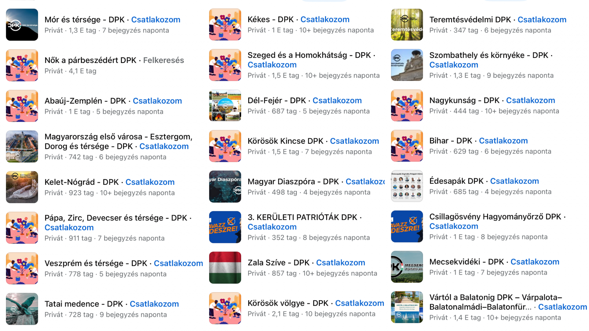 A kérdés megválaszolásához 12 random DPK-csoport választások óta közzétett posztjait néztük át. Ezekből az derült ki, hogy nincs egységes, kiforrott álláspont: az átmeneti időben van olyan csatorna, ami választási kibeszélőként, mások társkereső felületként, megint mások pedig afféle terápiás közegként működnek. A tábor foglalkoztatását tehát egyelőre nem adták fel, nem is lenne nagyon értelme.